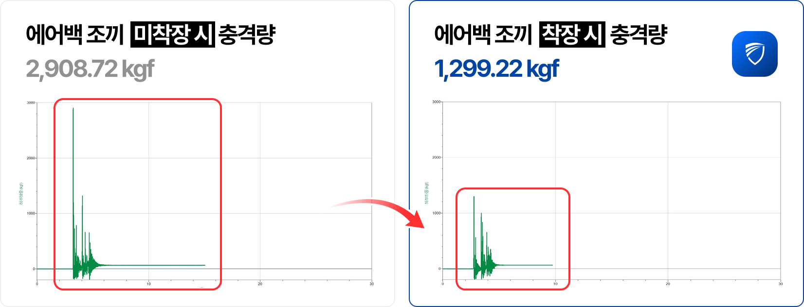 약 55%의 충격 저감 효과가 확인되었습니다.