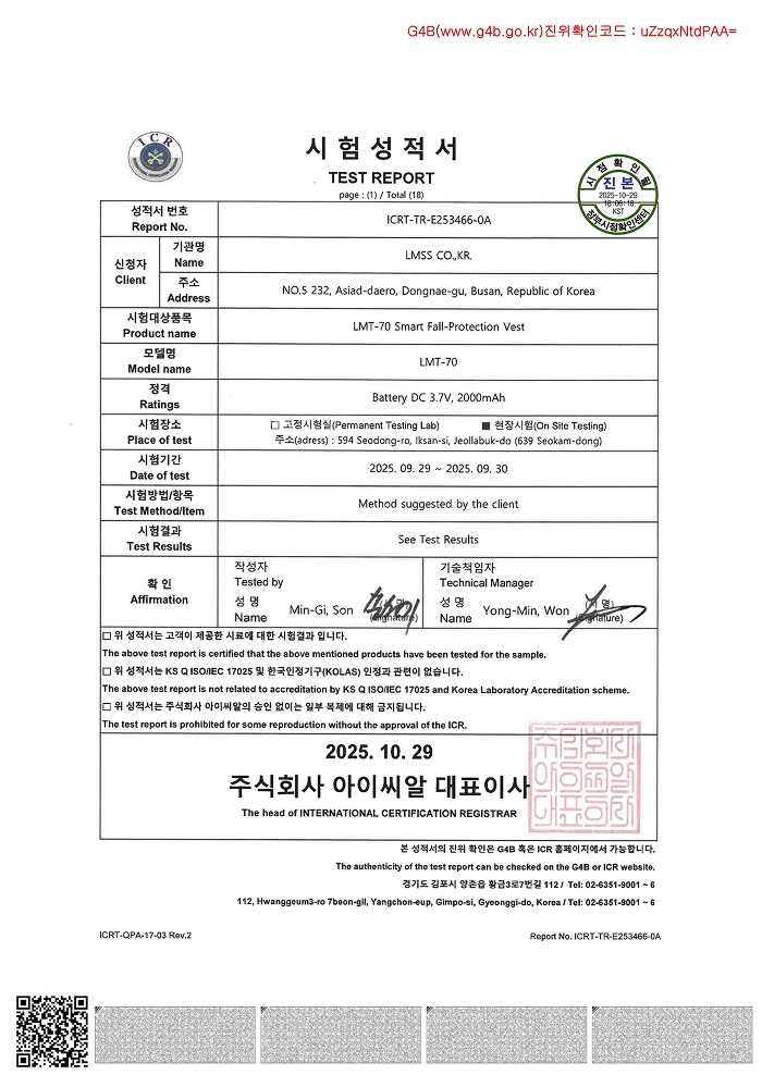 | 성적서 번호 ㅣ ICRT-TR-E253466-0A 발행일자 ㅣ 2025.10.29 |